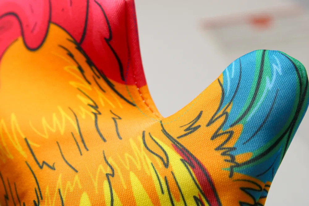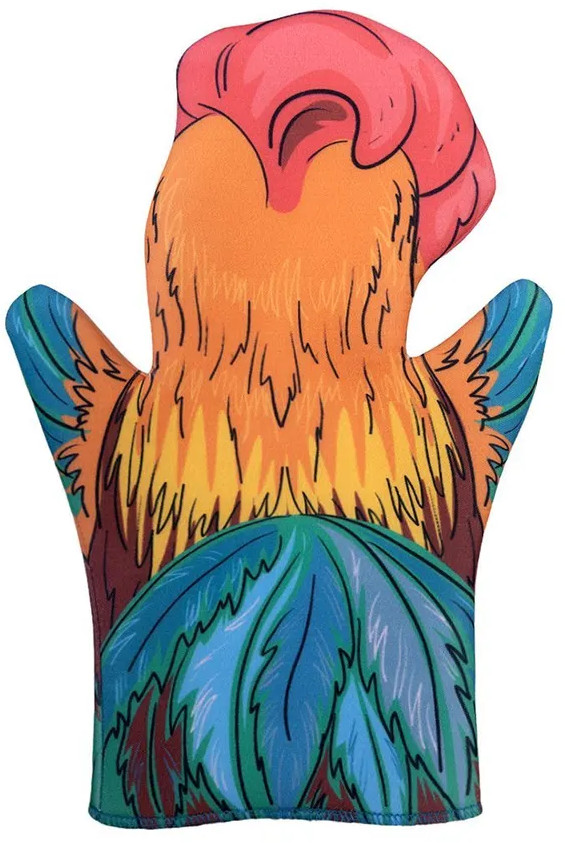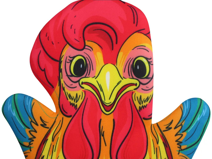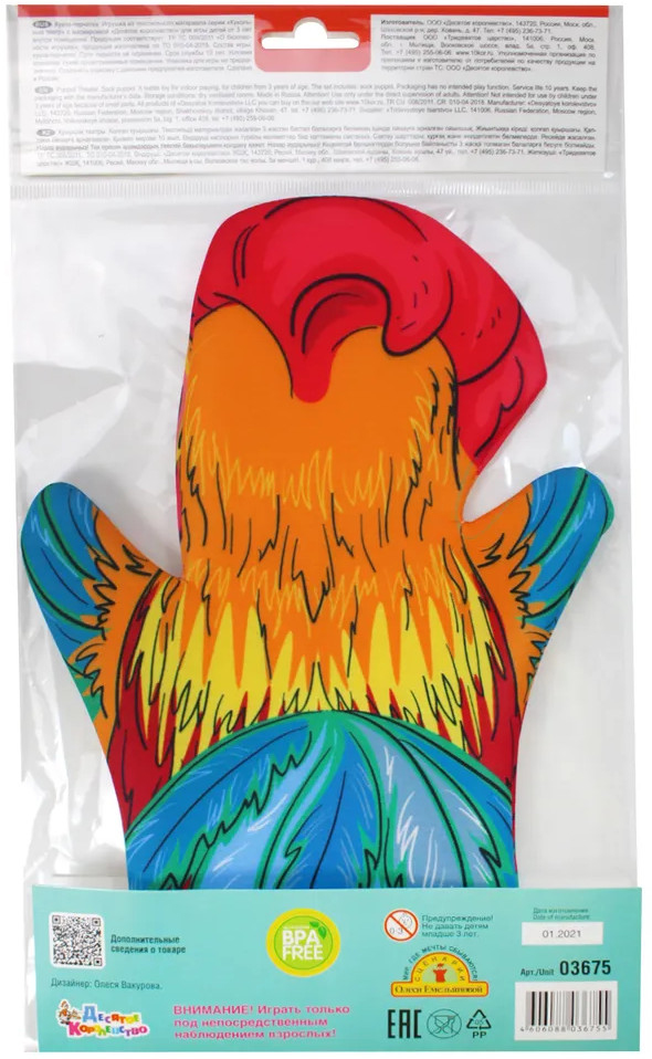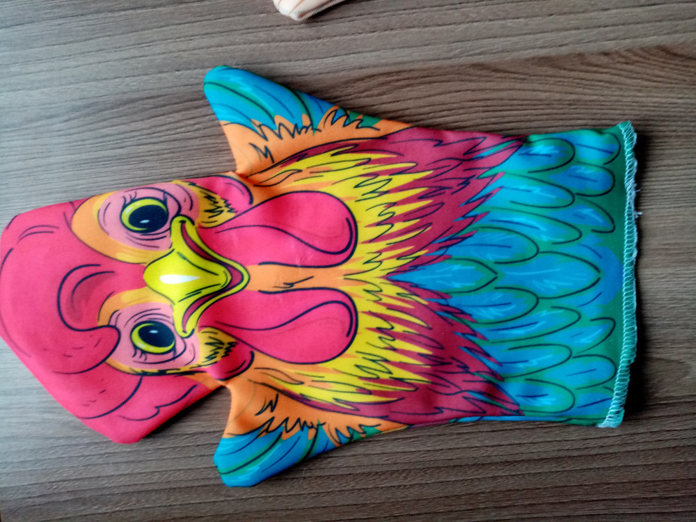 Брали перчатку для нашего школьного театра. Рисунок яркий, принт красивый. Но вот именно у этой куклы плохо обработан край.