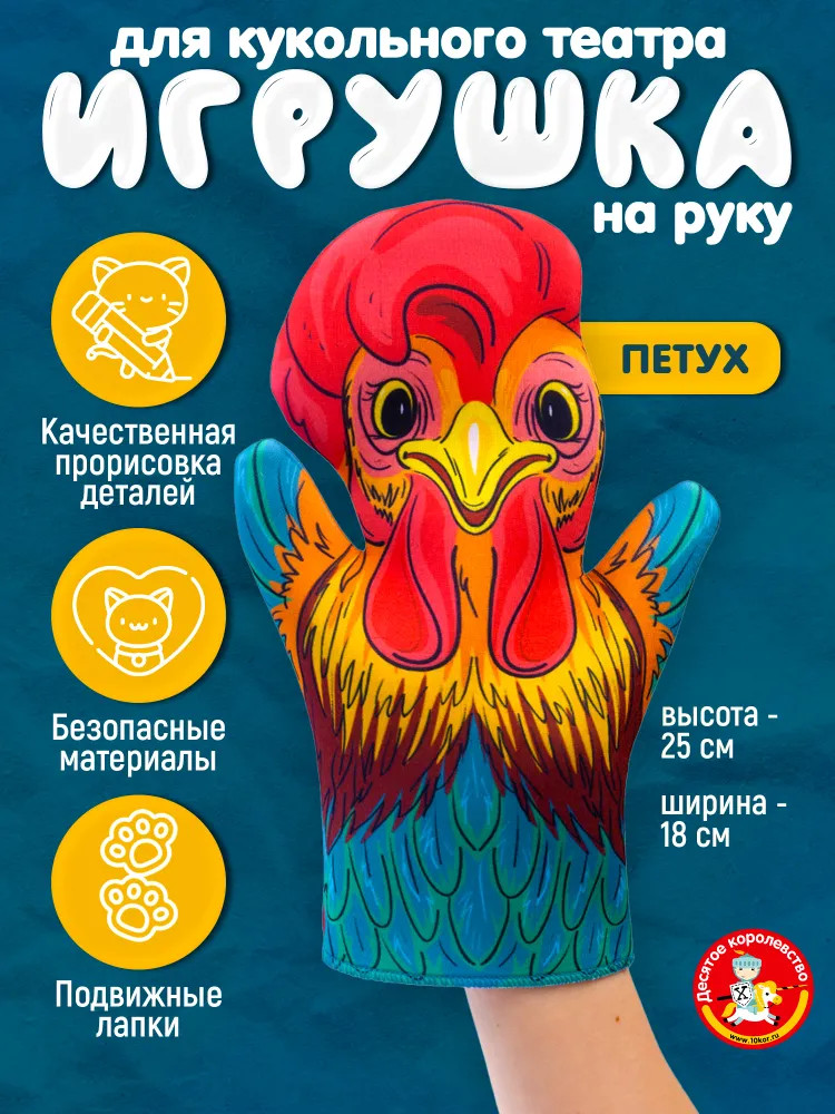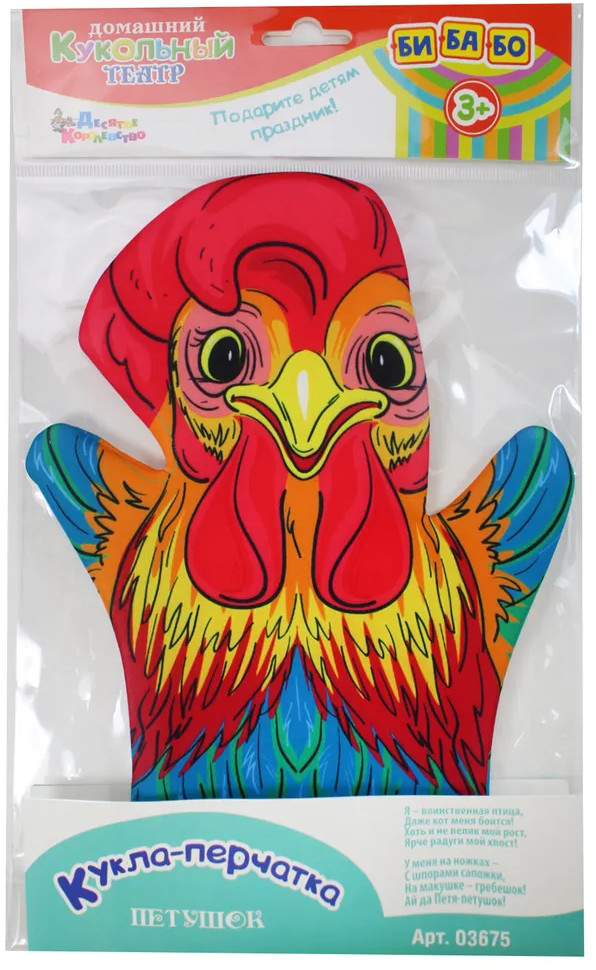 Десятое королевство Кукла-перчатка «Петух»В данный момент этот товар отсутствует в продаже. Возможно, у нас найдется аналогичный или похожий товар здесь. Серия: Би-Ба-Бо Кукла-перчатка «Петух» входит в серию кукольных театров «Би-Ба-Бо» от «Десятого королевства». Петух является персонажем многих русских сказок. Кукла-перчатка «Петух» подходит для постановки сказок «Зайкина избушка», «Страшный пых» и других. |
