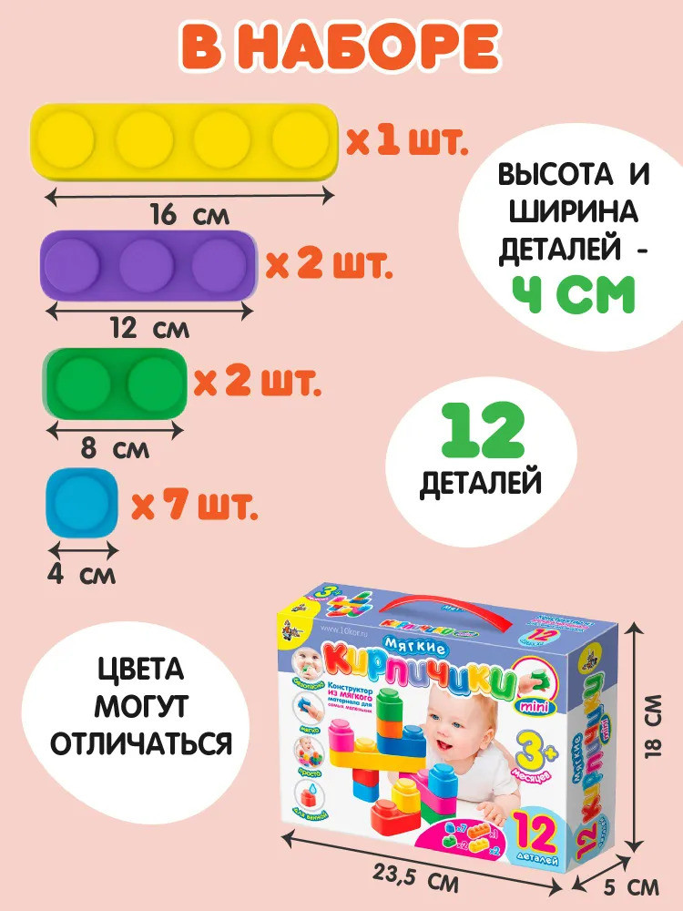 💳 Оплатить за товар можно при получении 🇰🇿 Есть бесплатная доставка по Казахстану от 1 дня 🎁 Копите бонусы с каждой покупки Серия: Мягкие кирпичики Этот красочный мягкий конструктор предназначен специально для самых маленьких детей возрастом от 3 месяцев. Из ярких деталей малыш сможет построить башенки, домики и другие красочные конструкции. Детали прочно крепятся между собой, и их можно крутить. С мягкими кирпичиками можно играть в ванной и в песке. Детали конструктора легко моются. Кирпичики изготовлены из мягкого пластика, гибкого и приятного для детских ручек. Материал конструктора абсолютно безопасен, даже если захочется попробовать какой-нибудь кирпичик на вкус! Детали имеют простую систему соединения, которую легко освоят даже самые маленькие непоседы. |