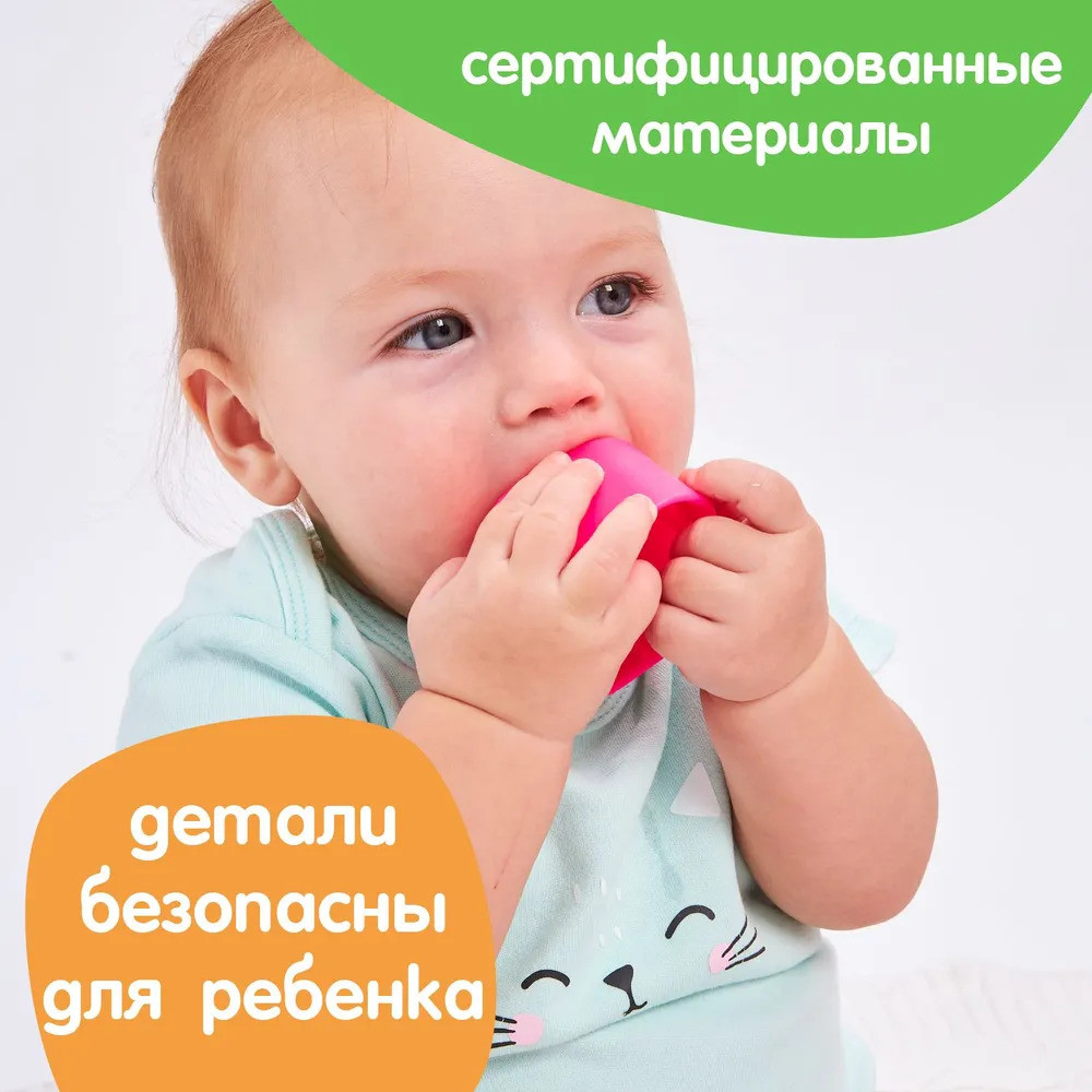 Игрушка хорошая. Мягкая, без запаха, яркая. Внучка пока ещё не собирает, только раскидывает (5 мес.)