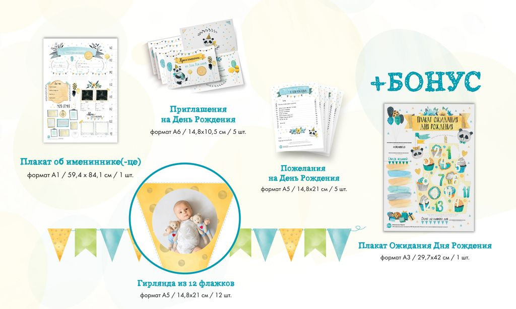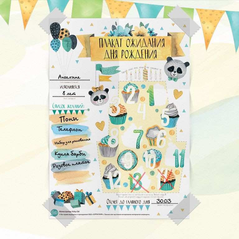 • плакат ожидания Дня рождения (А3, размер 29,7 × 42 см);