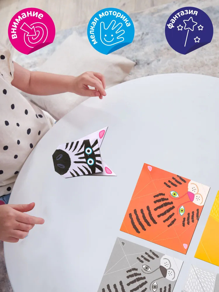 💳 Оплатить за товар можно при получении 🇰🇿 Есть бесплатная доставка по Казахстану от 1 дня 🎁 Копите бонусы с каждой покупки Набор для творчества оригами «Дикие зверята» рекомендуется для детей в возрасте от 4-х лет и старше. Ваш малыш без труда сможет сложить простые «Веселые рожицы» диких зверушек. Для этого достаточно следовать пошаговой инструкции, а для облегчения задачи места сгибов обозначены пунктирной линией. Занятие с оригами развивает у малышей моторику рук и пальцев, учит концентрировать внимание на творческом процессе. И в конечном итоге ребенок получает удовлетворение от достигнутого результата. |