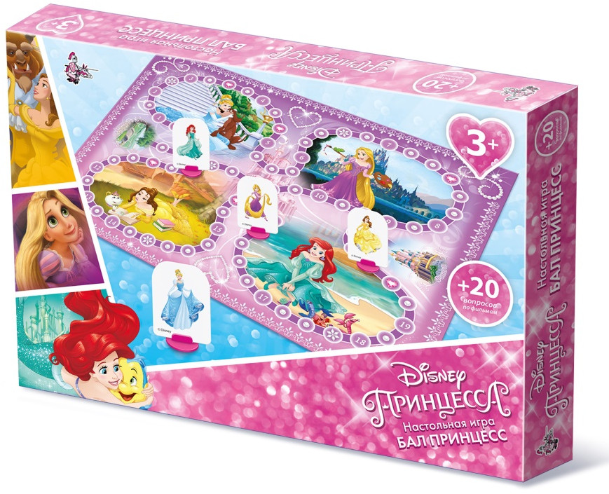 В этой веселой соревновательной настольной игре-ходилке «Бал Принцесс» ребенок научится устному счету и вниманию, совершит увлекательное путешествие и вновь встретится с персонажами любимых фильмов Дисней!
