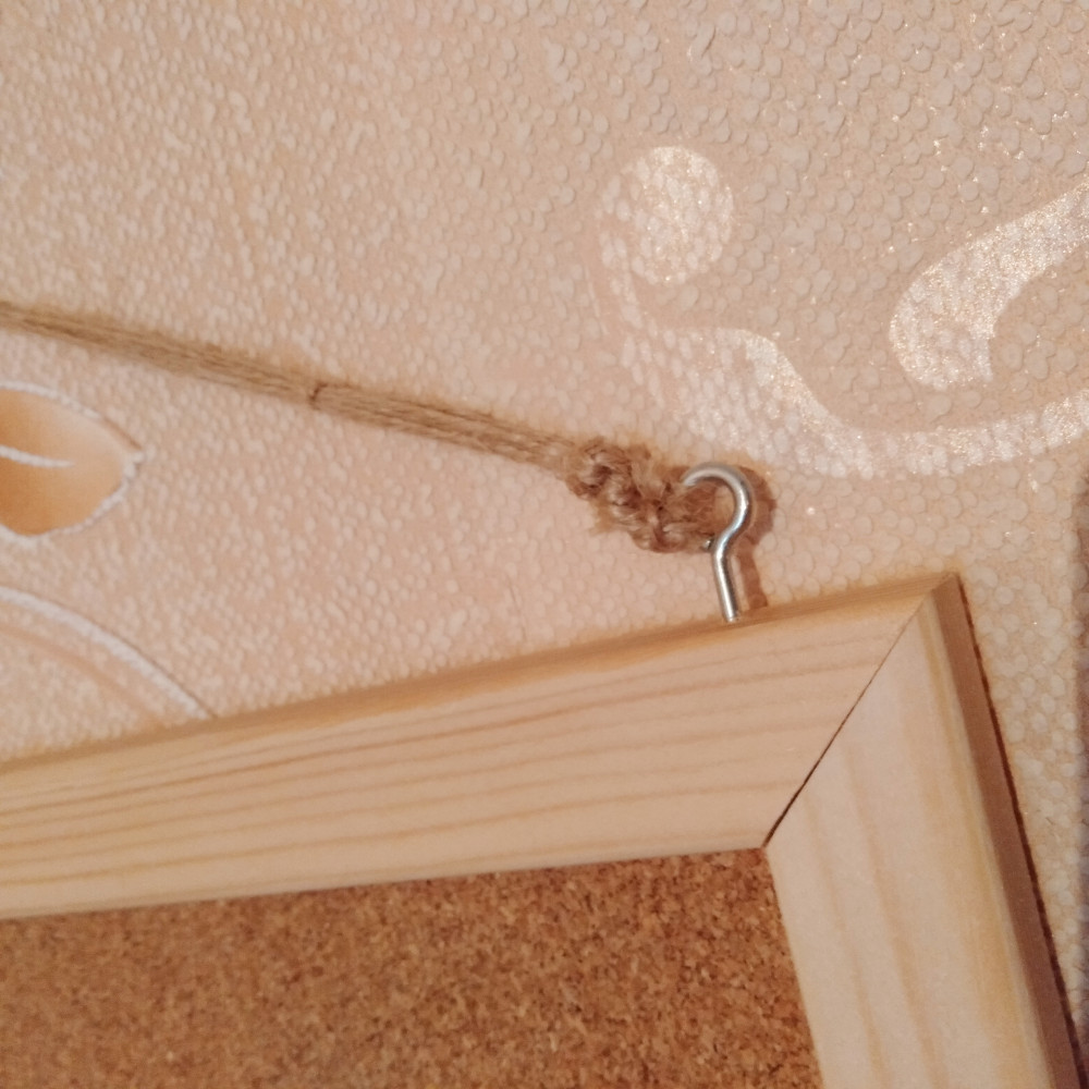 У мужчин есть привычка всё технически усложнять. 😜 Никаких танцев с бубнами, производитель всё предусмотрел. Я женщина, в доме не водятся инструменты. Крючки с ушком ввинчиваются прямо в раму. Руками. Предварительно слегка покрутив ножницами, чтобы получилось подобие отверстия, куда вкручивать. Всё прекрасно получилось за 5 минут. Портить стену и обои двумя дополнительными дюбелями не стала. Повесила на имеющийся гвоздь от часов, зацепив за вкрученные ушки пеньковый шнурок (5 лет без дела валялся, хоть пригодился для доски). Доска большая, отличная. 👍👍👍 Никаких недостатков не замечено.