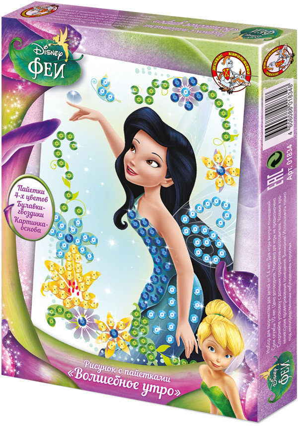 «Десятое королевство» предлагает покупателям набор для творчества: рисунок с пайетками «Феи, Волшебное утро», по лицензии «Уолт Дисней».