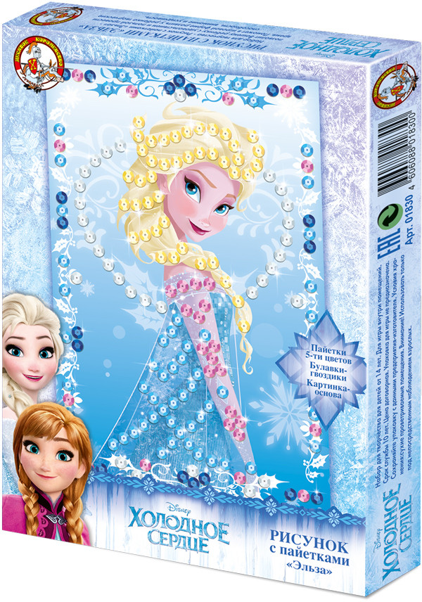 Любой ребенок хотя бы один раз смотрел полнометражный мультипликационный фильм «Холодное сердце» производства «Уолт Дисней» и не смог остаться равнодушным к главным героям этой сказки. Поэтому компания «Десятое королевство» выпустила в продажу новый набор для творчества: рисунок с пайетками «Холодное сердце, Эльза», по лицензии «Уолт Дисней».