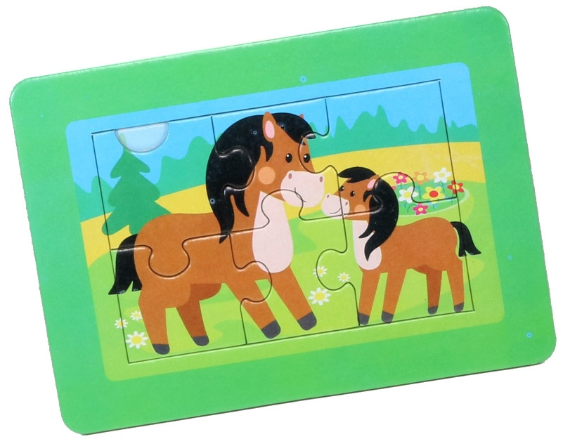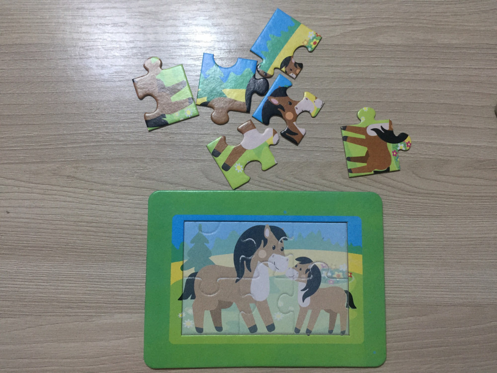 Отличные пазлы малышам от 1,5 года и старше. Как говорится, пазлы это от рождения до 99 лет. Это тренажёр для мозга. Ребёнок учится вниманию, усидчивость, развивается мелкая моторика. Замечательные пазлы, помимо можно обсудить с ребёнком, что нарисовано на самой картинке, найти где елка, где цветочки, справа, слева, такие понятия, как большая лошадка и маленькая, далеко лес, но близко елка. Пособирать пазлы. Ребёнок собрал, нам 1 год 11 мес. В этом пазле 6 разделение. Детям по младше даются пазлы с 2_3 разделениями, постарше 1,5 года как раз такие подойдут. Дети разные. Рекомендую их к покупке. Небольшие, но зато удобны для малышей.