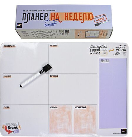 Планер магнитный с маркером «На неделю»В данный момент этот товар отсутствует в продаже. Возможно, у нас найдется аналогичный или похожий товар здесь. Вписывайте все свои дела на целую неделю. На таком планере вы сможете уместить очень много дел. Или вписать все кружки и секции, чтобы точно ничего не забыть. И конечно, делайте заметки и напоминалки. Планер вам прослужит долго! А маркер отлично крепится на холодильнике рядом с планером для быстрых заметок. Теперь все под рукой и на самом центральном месте любого дома — на холодильнике! |