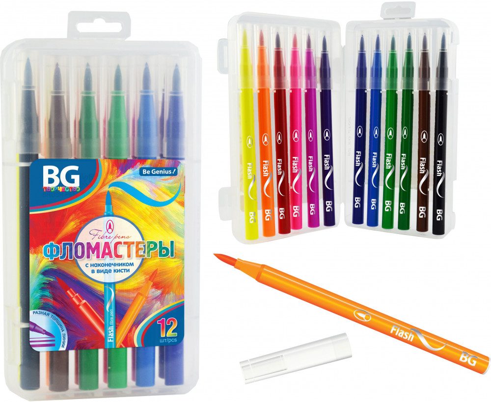 BG Набор фломастеровВ данный момент этот товар отсутствует в продаже. Возможно, у нас найдется аналогичный или похожий товар здесь. Серия: Flash Кисточковые фломастеры для рисования сочетают в себе преимущества сразу двух инструментов художника. Это — яркие цвета и удобство использования, то есть то, что нам нравится во фломастерах, и в то же время — возможность проведения линий разной толщины, которую дают кисти. И самые юные художники, и более взрослые любители рисования, наверняка отметят, что с помощью таких фломастеров проще заполнять цветом контуры, легче делать красивые переходы цветов. |
