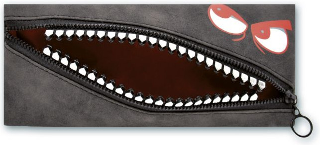 Пенал прикольный, сделан достаточно хорошо, зубы внутри серебристые, красный подклад. Но цвет у него на самом деле не красный, а больше бордовый