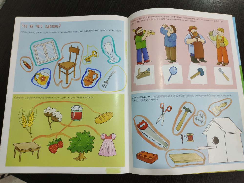 💳 Оплатить за товар можно при получении 🇰🇿 Есть бесплатная доставка по Казахстану от 1 дня 🎁 Копите бонусы с каждой покупки Книжка «Познавайка». Что из чего. Книжка с наклейками для детей от 6 лет |