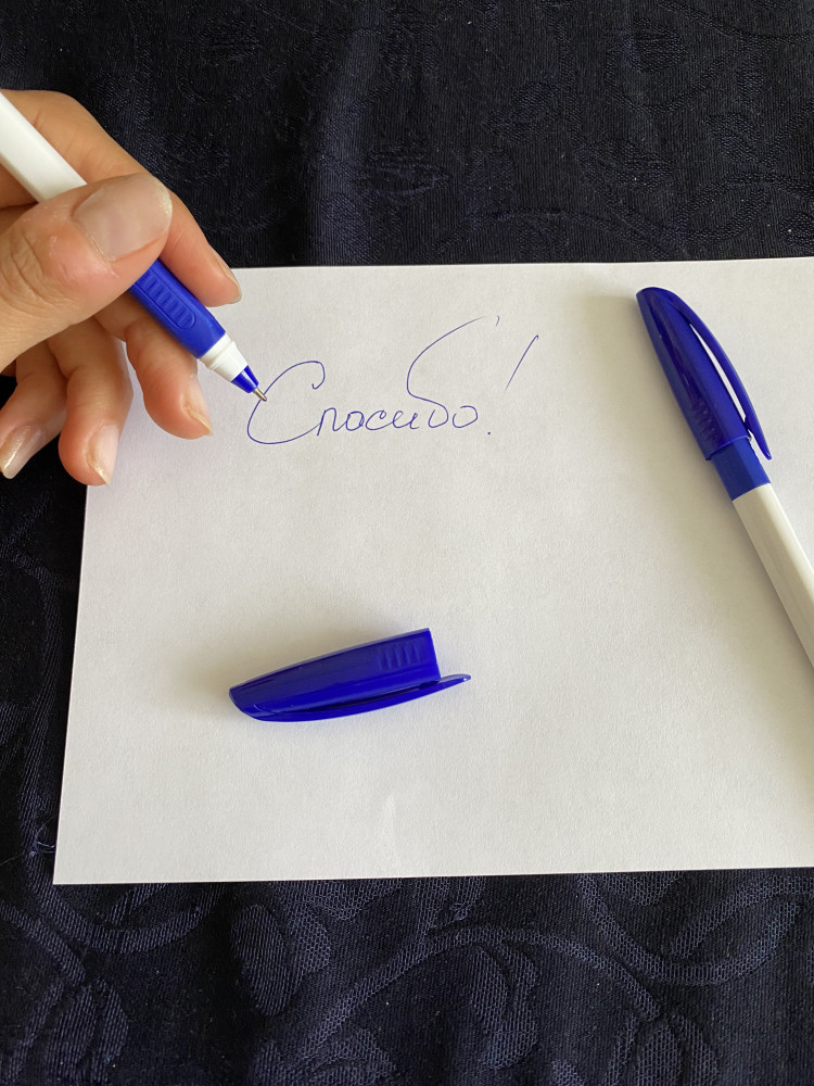 Очень удобная для руки, прям держать приятно, но писать невозможно, прерывается паста, будто уже заканчивается. Глядя на отзывы, купила 5 штук, все так.