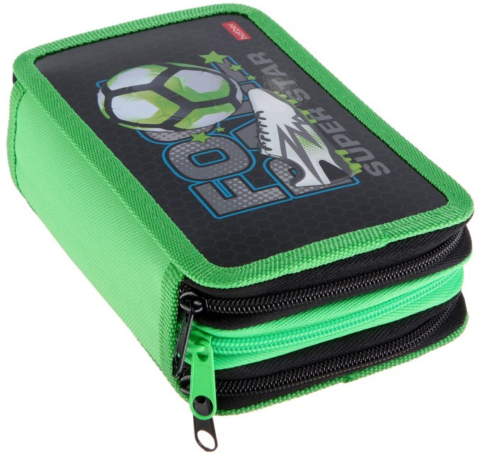 Hatber Пенал школьный «Super Star Football»В данный момент этот товар отсутствует в продаже. Возможно, у нас найдется аналогичный или похожий товар здесь. Пенал с твердой конструкцией имеет три отделения. Благодаря прочному ламинированному каркасу и плотно пристроченным петелькам из цветной резинки, канцелярские принадлежности не теряются. Имеется надежная застежка-молния в цвет изделия. Пенал поставляется без наполнения. Такой пенал станет незаменимым помощником для школьника, с ним ручки и карандаши всегда будут под рукой и больше не потеряются. |