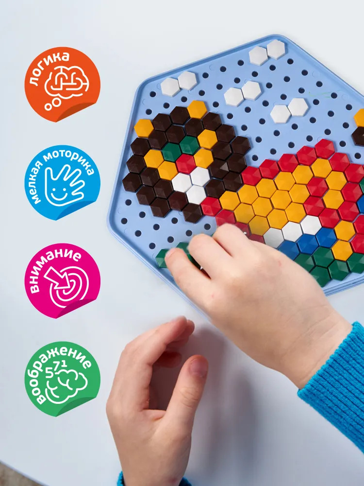 💳 Оплатить за товар можно при получении 🇰🇿 Есть бесплатная доставка по Казахстану от 1 дня 🎁 Копите бонусы с каждой покупки Мозаика из 150 элементов, шести цветов — это увлекательная обучающая и развивающая игра для самых маленьких. Яркие картинки заинтересуют вашего непоседу. В процессе игры ребенок освоит цвета, разовьет координацию движений и мелкую моторику. Мозаика рассчитана на детей начиная с 3 летнего возраста. |