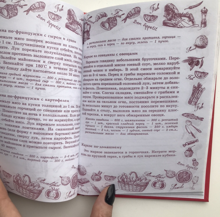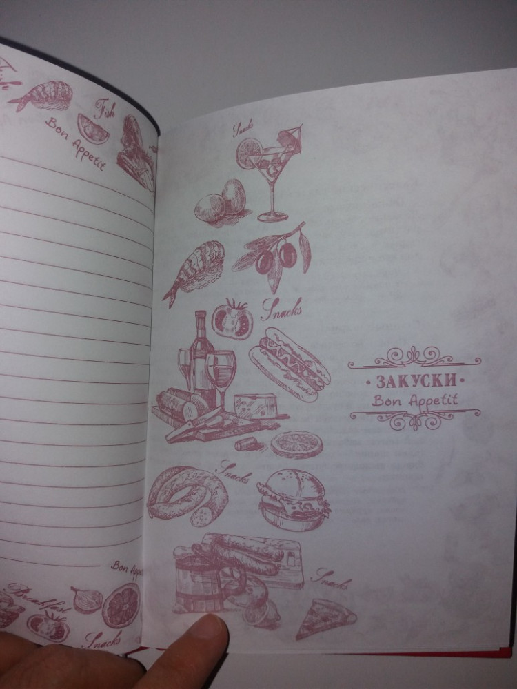 Книга для записи рецептов позволит создать свой идеальный сборник кулинара, который станет незаменимым помощником на кухне. Книга отличается стильным дизайном обложки и красиво оформленными страницами. Удобный формат и твердый переплет помогут бережно хранить секреты любимых блюд и все тонкости их приготовления, а удобный в поиске рубрикатор даст возможность быстро отыскать, где записан рецепт греческого салата, оливье, цезаря, моркови по-корейски или украинского борща.