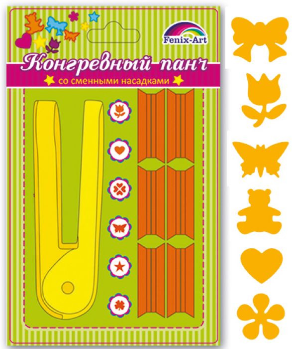 Феникс + Панч конгревный с 6 сменными насадкамиВ данный момент этот товар отсутствует в продаже. Возможно, у нас найдется аналогичный или похожий товар здесь. Панч ручной с 4-мя сменными насадками для тиснения фигур. Используется в скрапбукинге, для украшения открыток, карточек, коробочек и т.д. Рисунок прорези указан на ручке дырокола. Имеется 6 сменных насадок. |