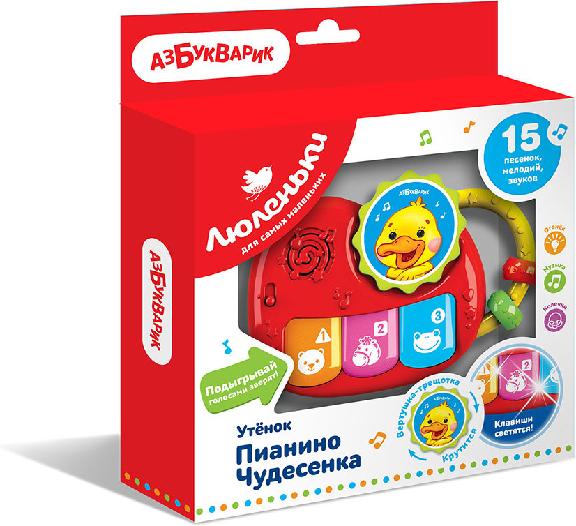 Азбукварик Игрушка музыкальная «Утёнок»-15% +104 звуки хорошие голоса приятные не шумная