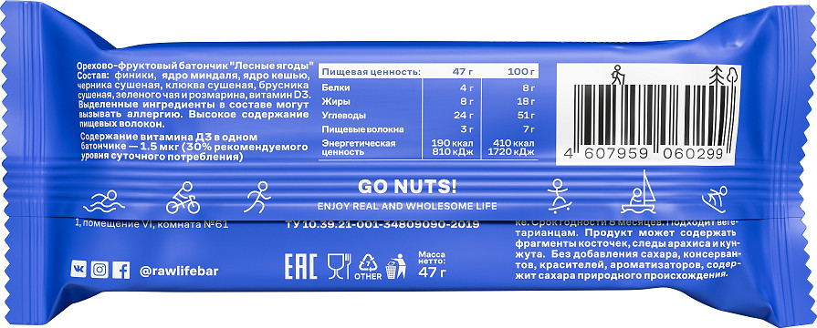 R.A.W. Life Батончик орехово-фруктовый «Лесные ягоды»