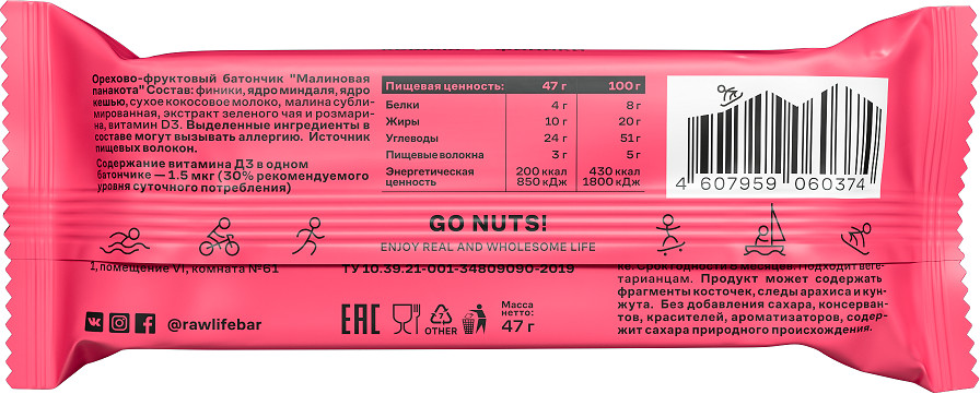 R.A.W. Life Батончик орехово-фруктовый «Малиновая панакота»
