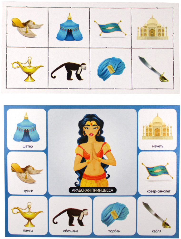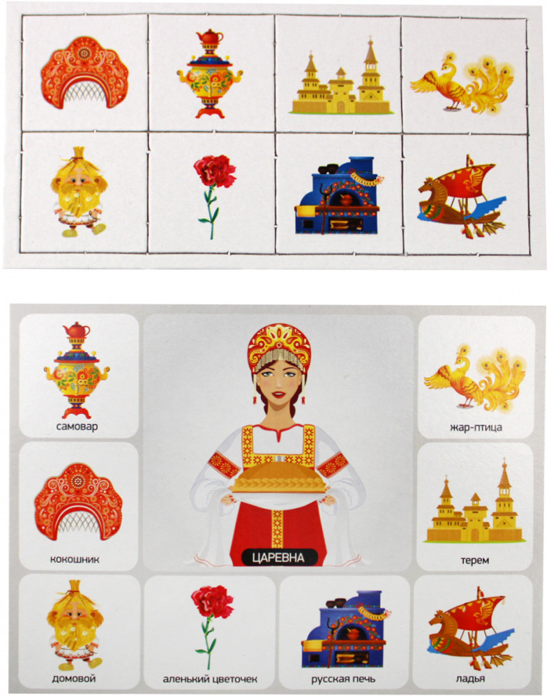 Картинки присутствуют все, а вот карточек для русалки не нашлось, зато есть лишние повторяющиеся.