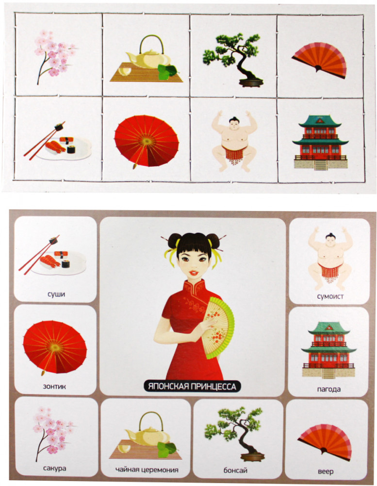 Десятое королевство Лото «Маленькая принцесса»В данный момент этот товар отсутствует в продаже. Возможно, у нас найдется аналогичный или похожий товар здесь. Малое детское картонное лото «Маленькая принцесса» предназначено в основном для девочек. Оно помогает окунуться детям в волшебный мир сказок. Закрывая маленькими карточками (размером 3,5×3,5 см) окружающие малые картинки, девочки узнают, чем похожа и чем отличается жизнь дочерей европейского короля, русского и морского царей, японского императора, предводителя викингов и восточного падишаха — где живут принцессы, что они любят, как развлекаются, кто их родители, друзья и поклонники. |
