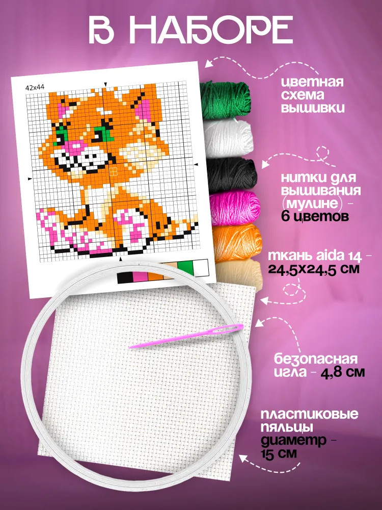 💳 Оплатить за товар можно при получении 🇰🇿 Есть бесплатная доставка по Казахстану от 1 дня 🎁 Копите бонусы с каждой покупки Занимаясь вышиванием, девочка будет развивать моторику рук, усидчивость и способность концентрировать. Кроме того, вышивать не только полезно для развития, но и очень интересно! Готовую картинку можно поставить в рамочку (не входит в комплект) и украсить ей интерьер. Набор для вышивания рекомендуется детям старше 5 лет. |