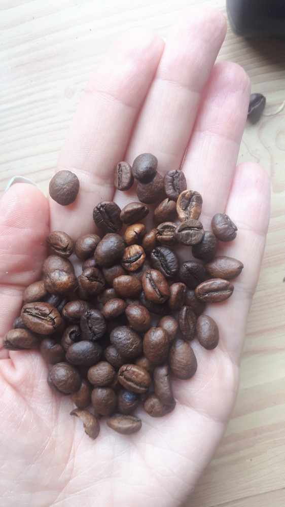 первое, что удивило, это отсутствие типа кофе. сами зерна не одинаковые, разного цвета и кажется разной степени обжарки запах скорее горелый, на вкус больше горечи