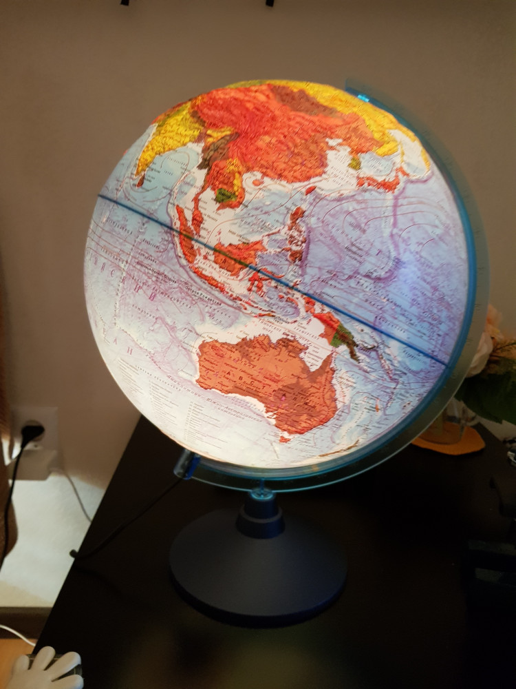 Привезли быстро и целым. Замечательный глобус, все читаемо и хорошо видно. Как ночник тоже очень красивый. Всей семьей разглядывали)) Ребенок в восторге!