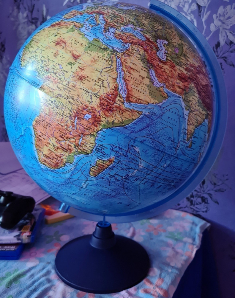 Большой физический глобус. Отличное пособие для уроков познания мира. Приемлемая цена.
