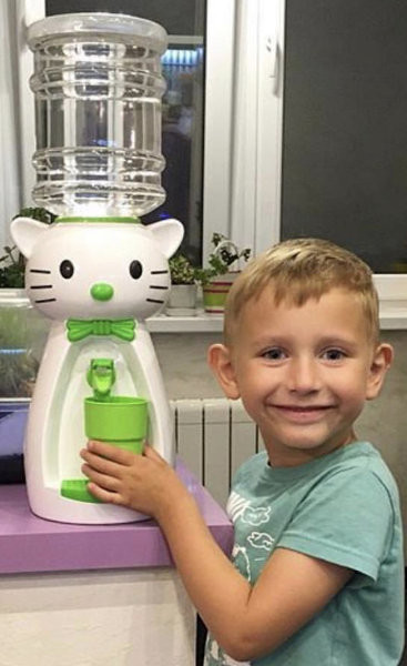 Кулер детям понравился очень, мне показался немного неустойчивым и не совсем аккуратно сделан, на боку две вмятинки, на крышке бутыля зазубрины и в комплекте пришёл только один стаканчик. но звезду не снимаю, так как вещь все равно хорошая, пластик качественный, без постороннего запаха. Уже опробовали жиденьким киселем))