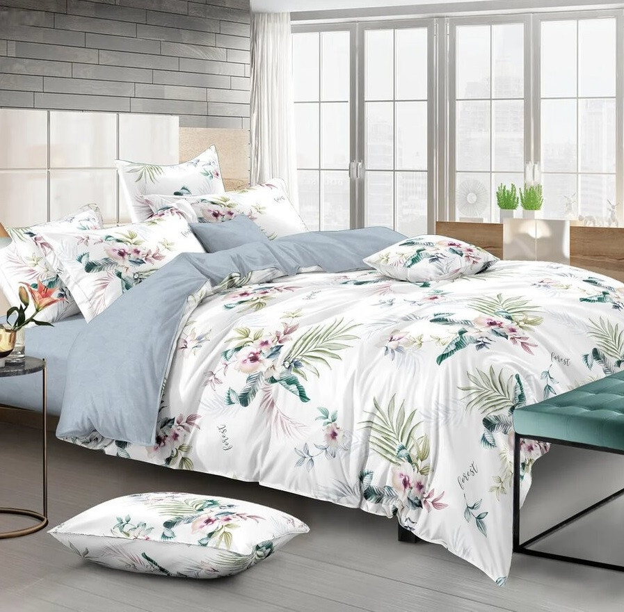 Постельное белье сшито из сатина — самого популярного плетения 100%-го хлопка. Сатин очень мягкий, износостойкий, который производят из крученой хлопковой нити по специальной технологии двойного плетения. Чем больше скручена нить, тем сильнее блестит ткань. Плотное переплетение нитей делает сатин премиум прочным и долговечным. Для производства сатина используют только хлопок высшего качества. Белье из такой ткани выдерживает 200–300 стирок. Сатин дешевле, чем шёлк, но дороже, чем другие ткани из хлопка. Из него изготовляется красивое качественное бельё для повседневного применения.