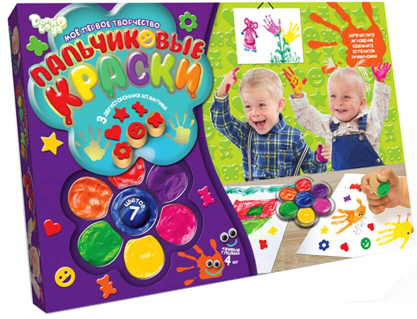 Густые и нежные на ощупь краски прекрасно тренируют мелкую моторику, тактильную чувствительность. Рисование пальчиками положительно влияет на эмоциональное состояние ребенка, служит первым шагом в творческом развитии. В комплекте есть штампики.