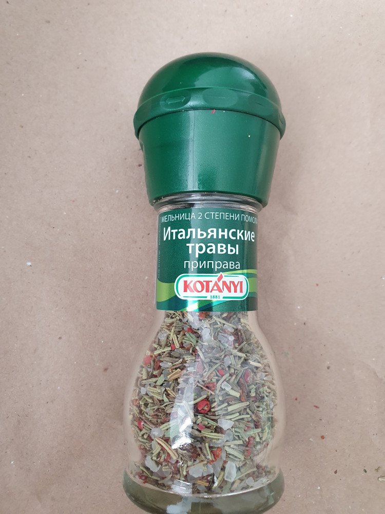 Приправа Итальянские травы мне очень понравилось. Запах классный, сама бутылочка вообще супер, очень удобная