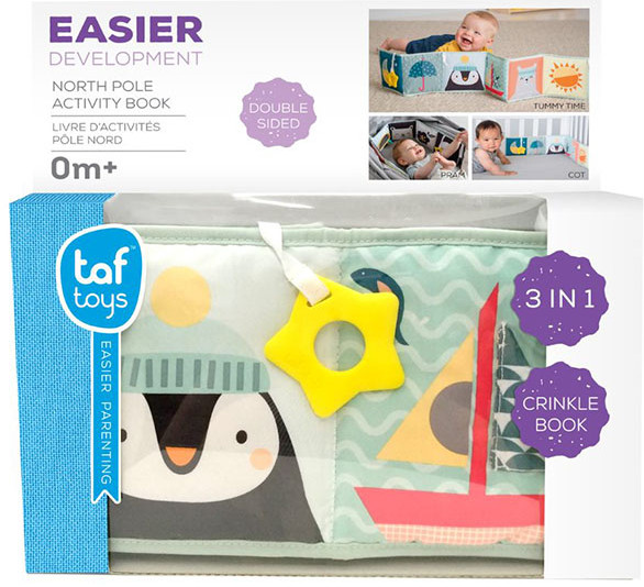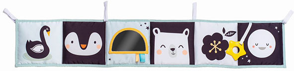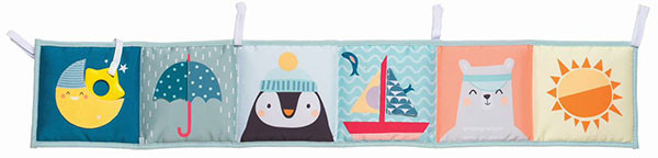 Taf Toys Игрушка «Развивающая книжка» с завязкамиВ данный момент этот товар отсутствует в продаже. Возможно, у нас найдется аналогичный или похожий товар здесь. Мягкая тканевая книжка-раскладушка для кроватки или коляски. Представляет собой шесть двусторонних квадратов, соединенных между собой. С одной стороны использованы рисунки забавных зверюшек высококонтрастных цветов для развития эмоционального интеллекта ребенка и безопасное зеркальце. С другой стороны разноцветные текстуры, трехмерные изображения, в том числе прорезыватель и игровой кармашек. |