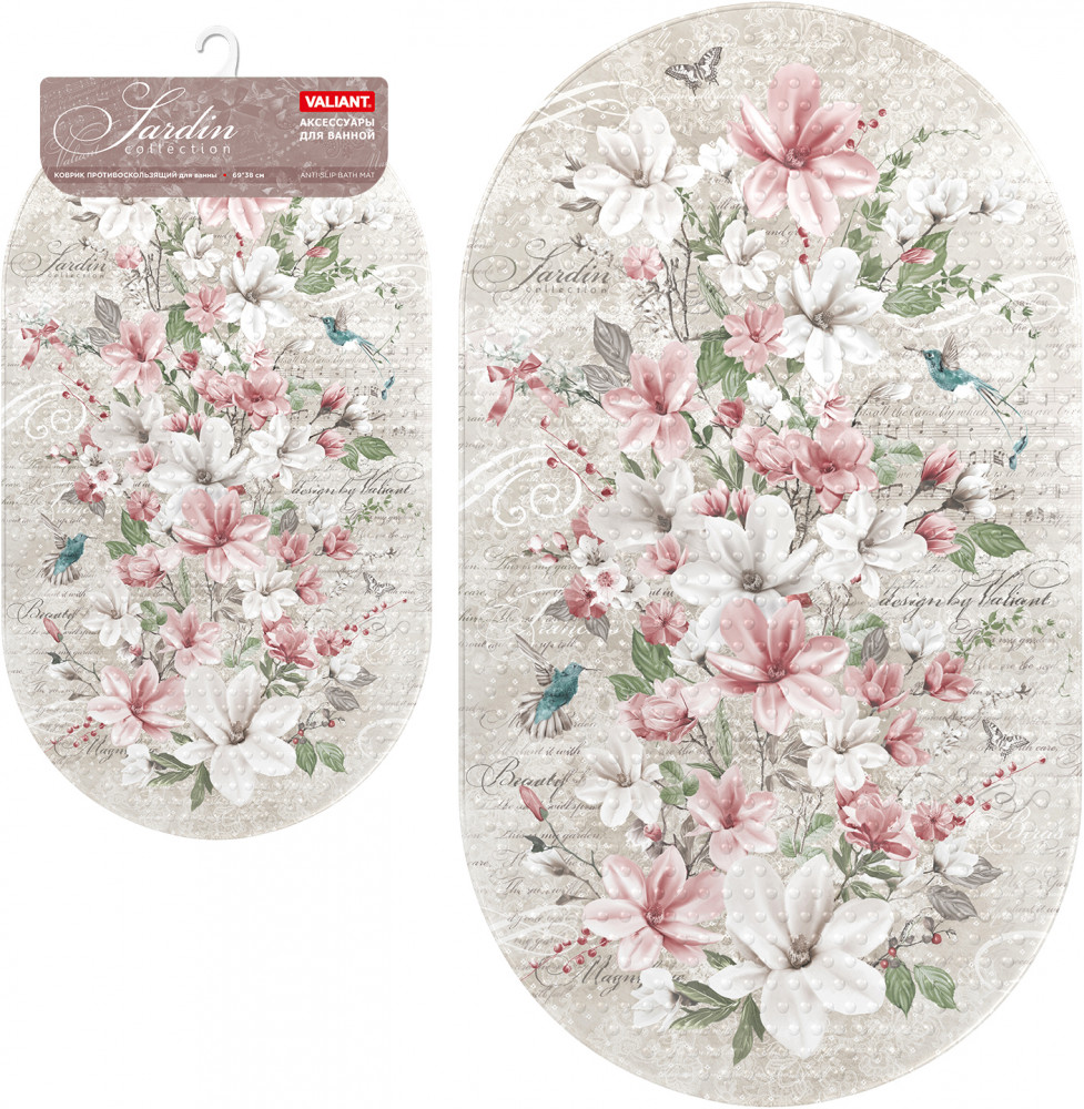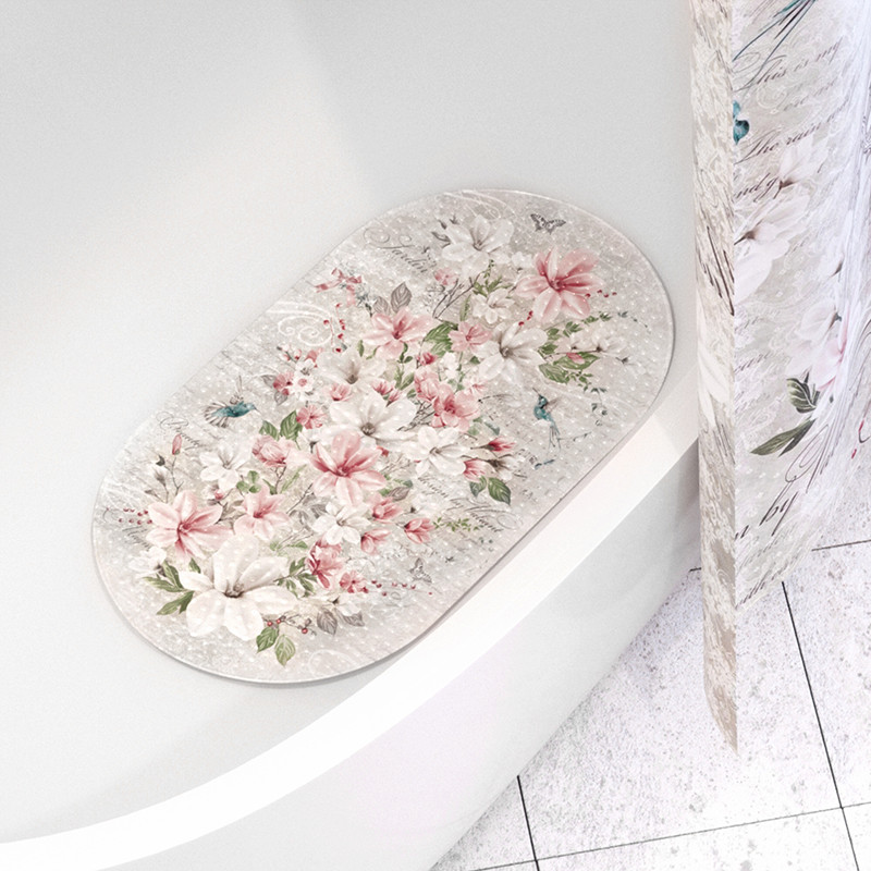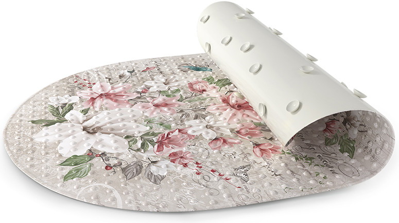 Коврик предназначен для использования непосредственно в ванне, душевой кабине или на полу ванной комнаты. Благодаря специальным эластичным присоскам коврик надежно крепится к ванне. Collection Jardin создает легкий и утонченный дух французской провинции в ванной комнате.
