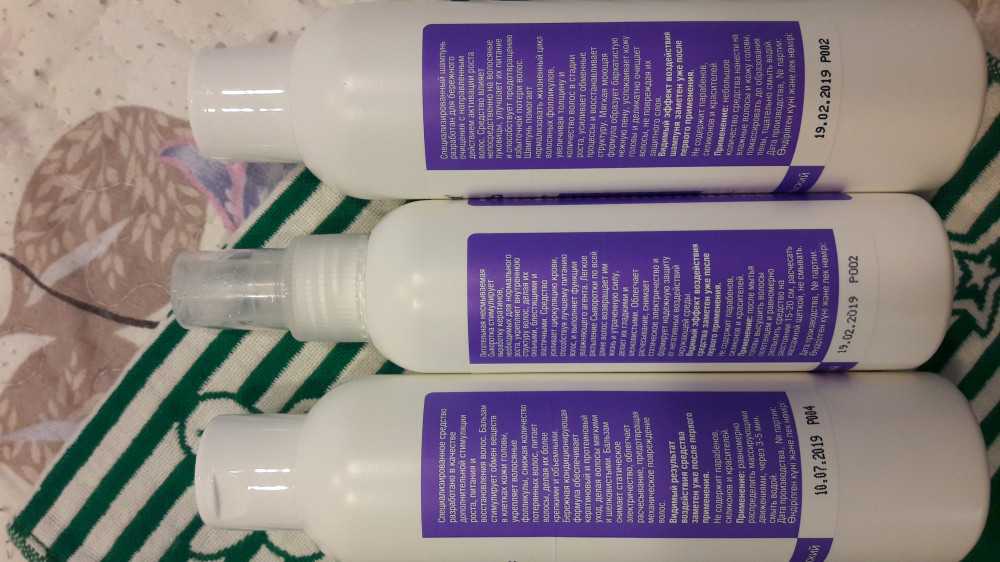 Шампунь промывает волосы очень хорошо, до скрипа, даже очень жирные. Бальзам уменьшает выпадение - факт. Спрей - ни то, ни сё, сразу жирнит волосы, прямо ах. И страшно начинает чесаться кожа головы. Перхоти нет, но почему зуд? Помыла дважды обычным шампунем - ничего не чешется. Применила этот - опять всё заново.