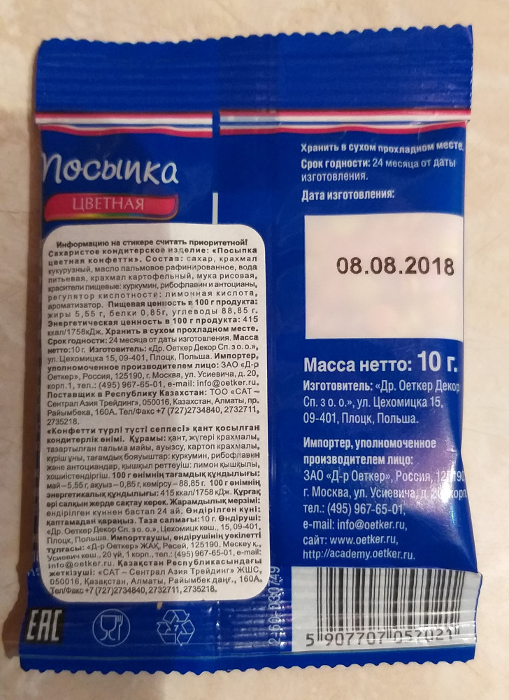 Dr. Bakers Посыпка цветная «Конфетти»В данный момент этот товар отсутствует в продаже. Возможно, у нас найдется аналогичный или похожий товар здесь. Dr. Bakers — полный преемник немецкой компании Dr. Oetker. Основная линейка продуктов для выпечки будет выпускаться под новым брендом Dr. Bakers с сохранением прежней рецептуры и привычного потребителям высокого качества. На упаковке товара может быть указан бренд как Dr. Oetker, так и бренд Dr. Bakers. |