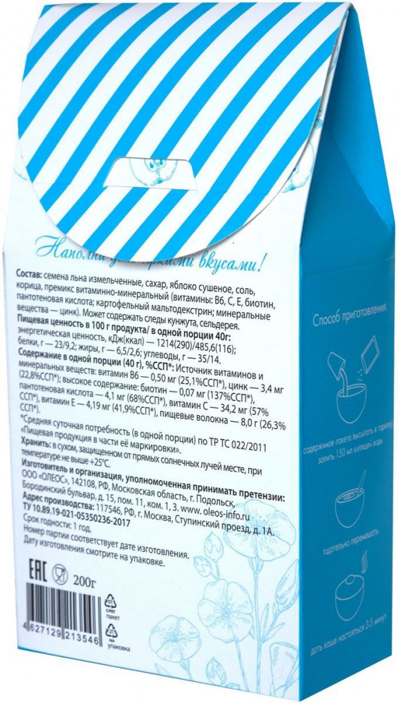 Oleos Каша льняная с яблоком и корицей
