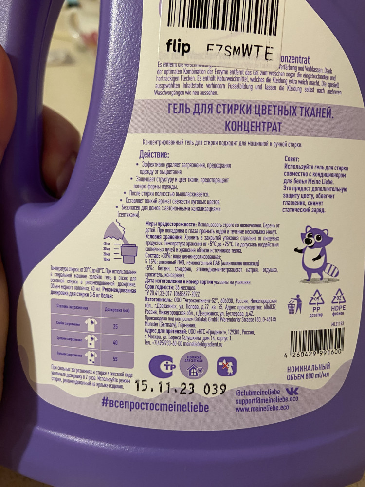 Произведен уже не в Германии , а в России . Описание неверное . Ранее брала этот гель на Флип и отдушка была совсем другая , приятная и нежная , а эта резковатая . Не понравилась .