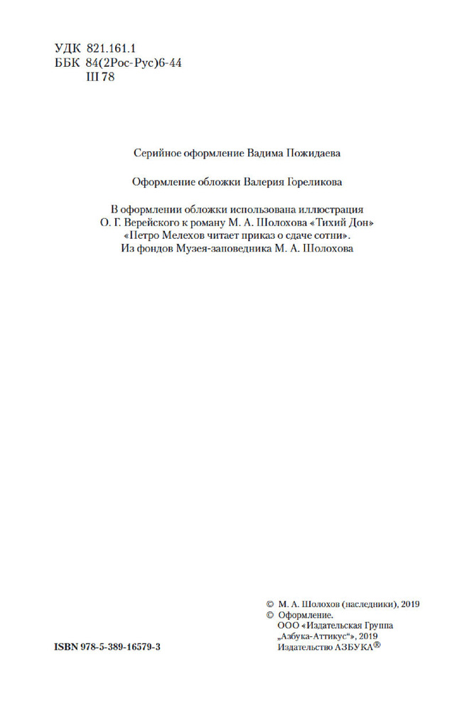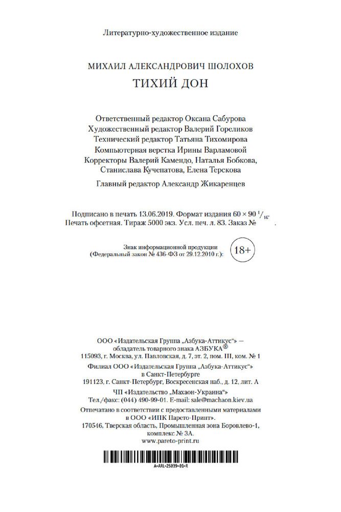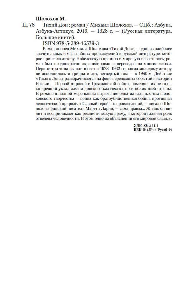 💳 Оплатить за товар можно при получении 🇰🇿 Есть бесплатная доставка по Казахстану от 1 дня 🎁 Копите бонусы с каждой покупки Серия: Русская литература. Большие книги Роман-эпопея Михаила Шолохова «Тихий Дон» — одно из наиболее значительных и масштабных произведений в русской литературе, которое принесло автору Нобелевскую премию и мировую известность; роман был неоднократно экранизирован и переведен на многие языки. Первые три тома вышли в свет в 1928–1932 гг., когда молодому автору не исполнилось и тридцати лет, четвертый том — в 1940-м. Действие «Тихого Дона» разворачивается на фоне переломных событий в истории России — Первой мировой и Гражданской войны, поменявших не только древний уклад жизни донского казачества, но и облик всей страны. В романе в полной мере нашла выражение одна из главных тем шолоховского творчества — война как братоубийственная бойня, противная человеческой природе. «Главный герой его произведений, — писал о Шолохове финский писатель Мартти Ларни, — сама правда... Жизнь он видит и воспринимает как реалистическую драму, в которой главная роль отведена человечности. В этом одно из объяснений его мировой славы». |