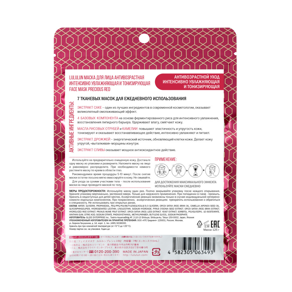 LuLuLun Маска для лица антивозрастастная тонизирующая «Precious red»