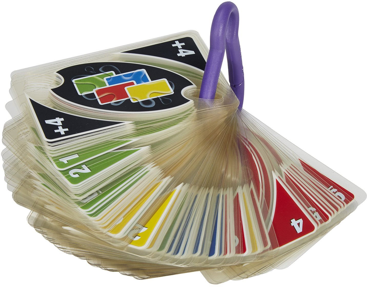 Сразу озвучу минус, пластиковые карточки скользят друг об друга и в карабин неудобно их вставлять. Из плюсов они долговечнее бумажных, особенно если часто играть. Смотрятся необычно - есть прозрачная часть на картах. Качество карточек отличное, цвета яркие, сами карты пластичные, изгибаются, детям нравятся.