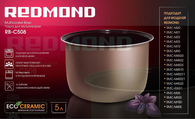 Подходит к мультиваркам REDMOND: RMC-M20, RMC-M22 , RMC-M29, RMC-M23, RMC-M4525, RMC-M26, RMC-M4500, RMC-M4510, RMC-M4511, RMC-M4512, RMC-M4513, RMC-M90, RMC-M150, RMC-M4502, RMC-M70, M222S , M223S, RMC-395, RMC-M31, M40S, M42S.
