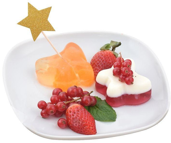Формочки не плохие, только хлюпковаты, нужно выставлять на тарелку/доску и аккуратно заливать в них (желе), края хлюпкие, форму сразу не очень держат. Но в итоге, после 2 часов в холодильнике, желе - бабочки получились симпатичные