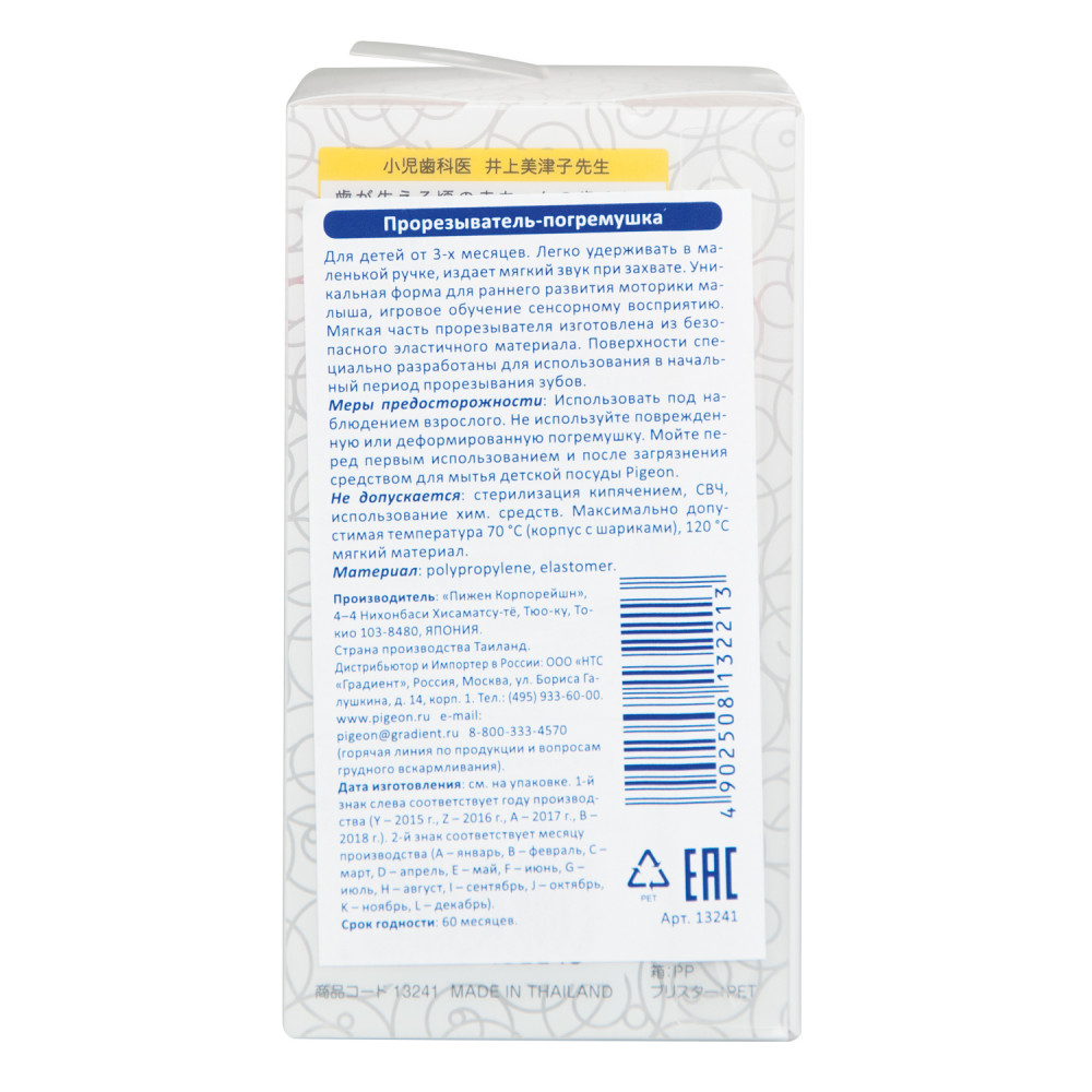Pigeon Прорезыватель-погремушкаВ данный момент этот товар отсутствует в продаже. Возможно, у нас найдется аналогичный или похожий товар здесь. Серия: Munch Teether Для детей от 3-х месяцев. Легко удерживать в маленькой ручке, издает мягкий звук при захвате. Уникальная форма для раннего развития моторики малыша, игровое обучение сенсорному восприятию. Мягкая часть прорезывателя изготовлена из безопасного эластичного материала. Поверхности специально разработаны для использования в начальный период прорезывания зубов. |