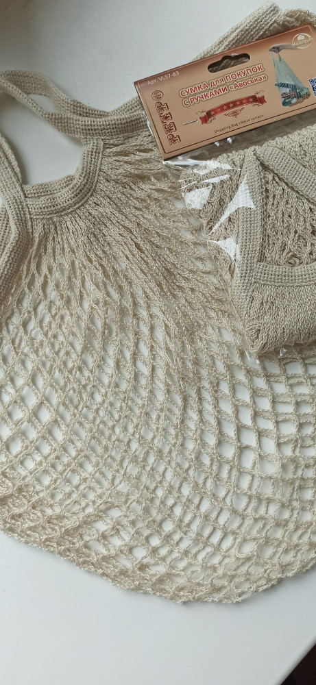 Хорошая сумка-авоська. Выглядит стильно. Цвет приятный нейтральный. Объемная, вместительная, растягивается. Но плетение неплотное, слабовато. Положила зонт, а когда вытаскивала, спица чуть зацепила одну из нитей и сразу появилась затяжка. Так что есть сомнения по поводу прочности. Возможно прослужит долго, если не нагружать и часто ее не использовать. Неудобно также, что под весом сильно растягивается вниз. Я - высокая, мне нормально. А вот у людей со средним и маленьким ростом, такая авоська будет местами задевать асфальт/дорогу/землю при передвижении. Производство - Китай, по заказу России.