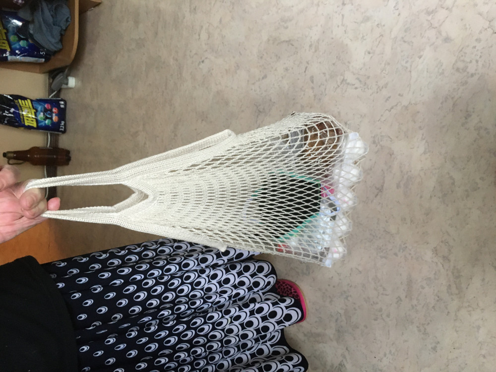 Хорошая авоська, вместительная. Но если слишком много положить, то вытягивается до пола. А так очень удобная штука. И опять же эко-тема
