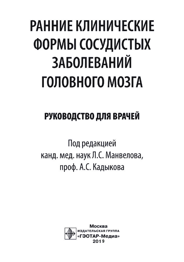 В руководстве обобщен многолетний опыт авторов по изучению широко распространенных среди населения ранних форм сосудистых заболеваний головного мозга, адекватная терапия которых позволяет улучшить качество жизни больных и предотвратить инсульт.
