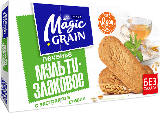 Magic Grain Печенье с экстрактом стевии «Мультизлаковое»+39 без сахара вкусное хороший состав удобная расфасовка