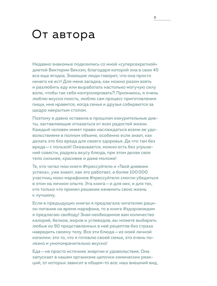 #Здоровоедим. Попробуй счастье на вкусВ данный момент этот товар отсутствует в продаже. Возможно, у нас найдется аналогичный или похожий товар здесь. Серия: Прессуйтело. Книги от известного фитнес и лайфстайл-блогера Натальи Давыдовой (Tetyamotya) Попробуй счастье на вкус! Кулинарная магия от Наташи Давыдовой: 90 уникальных рецептов, которые помогут сделать ваших детей здоровыми, мужа — влюбленным и готовым на подвиги, а вас — счастливой! Автор бестселлера #прессуйтело и его популярного продолжения — книги «Твой дневник успеха», автор и ведущая семинаров о здоровом образе жизни #wellnessparty и популярный блогер @tetyamotya раскрывает тайны по-настоящему полезной еды и делится с читателями секретами авторских блюд, которые она создавала для своей семьи. #здоровоедим — это: Выгодно — автор использует как знакомые всем продукты, так и необычные, но при этом недорогие ингредиенты. Креативно — в книге нет привычных рецептов, которые можно найти в большинстве руководств по правильному питанию. Удобно — для каждого блюда уже подсчитаны калорийность и соотношение белков, жиров и углеводов. С пользой — еда, которая изменит ваши представления о здоровом образе жизни. Научно подтверждено — рацион основан на исследованиях ведущих мировых ученых в области правильного питания и anti-age-рациона. Оперативно — рецепты Натальи помогут готовить быстро и планировать свое меню заранее. 90 уникальных рецептов для того, чтобы начать счастливую и здоровую жизнь прямо сейчас! |